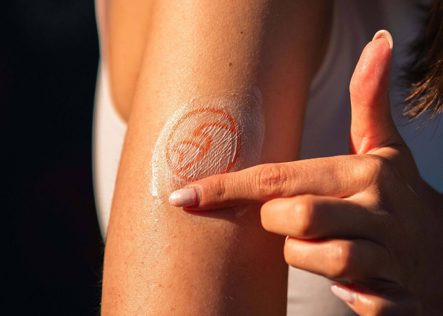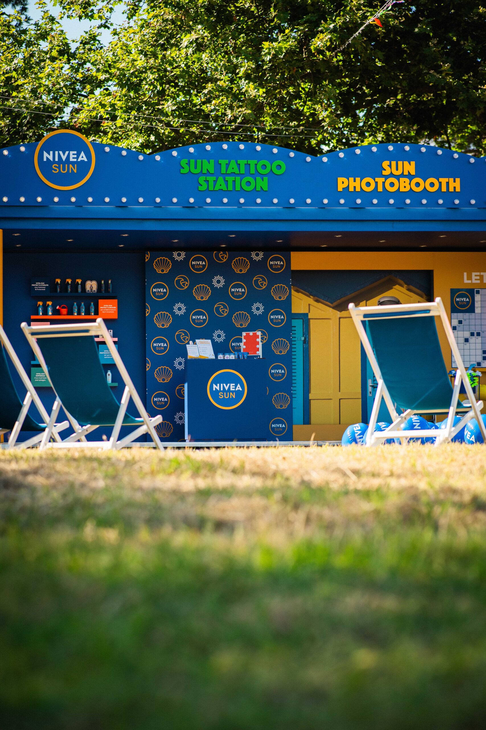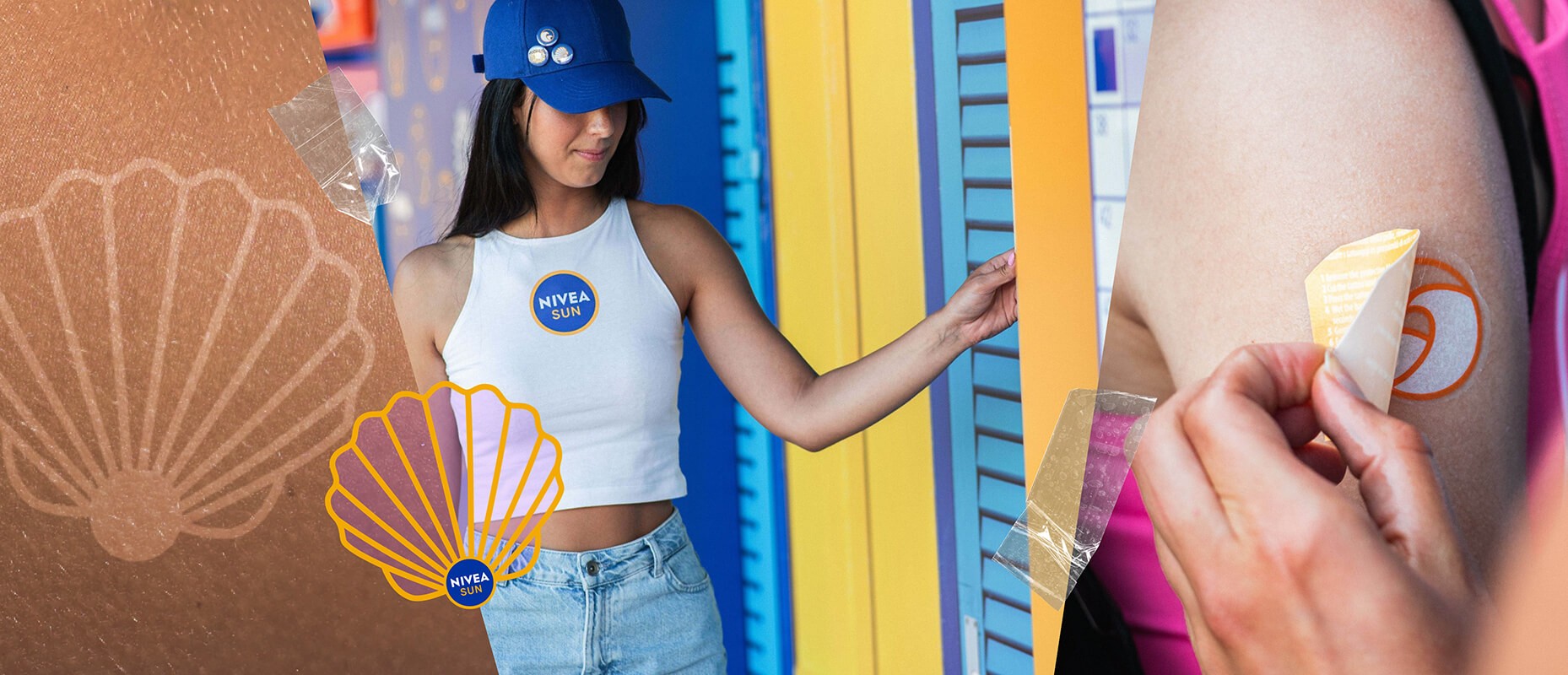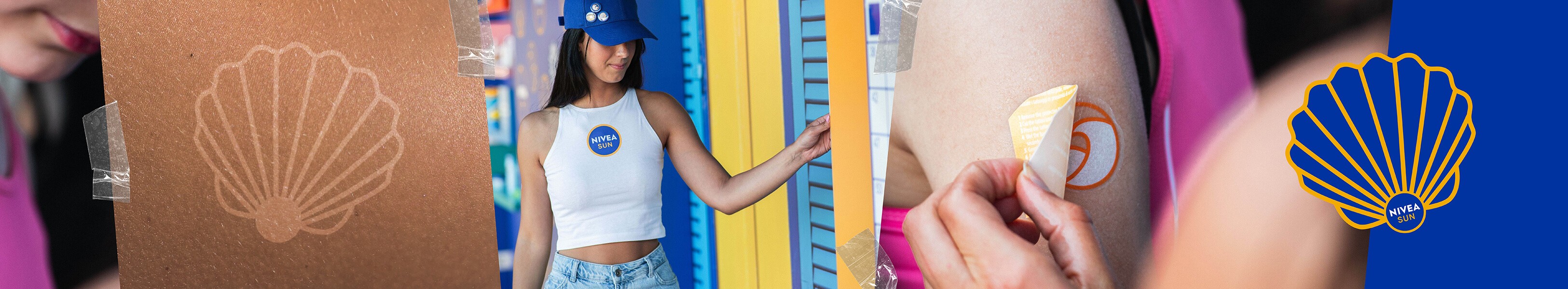 The hero mechanic was a thermochromatic temporary tattoo that changes colour to signal when to reapply SPF. Around it: quick skin-health prompts, playful wayfinding and social-friendly touchpoints.